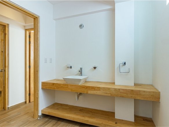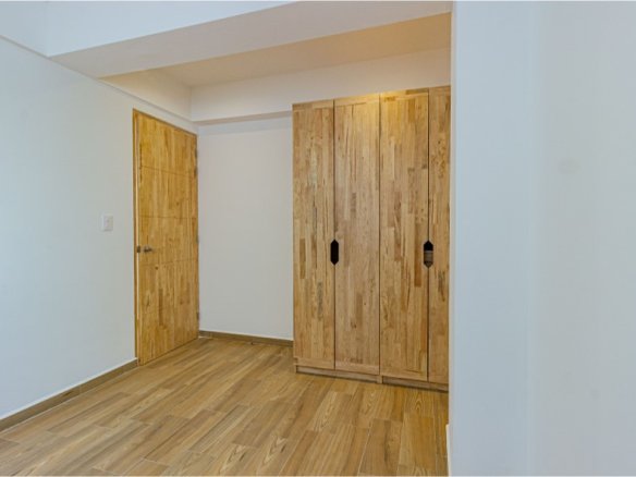 Townhouse interior de 3 niveles. Sala comedor, cocina equipada, bodega y medio baño para visitas en el nivel de acceso. En el segundo nivel la recámara principal con clóset vestidor y baño propio, y una sala de TV. Dos recámaras secundarias con baño completo compartido en el tercer nivel. Roof garden privado con cuarto de lavado. 117 m2 habitables, 28 m2 libres. 2 lugares de estacionamiento.