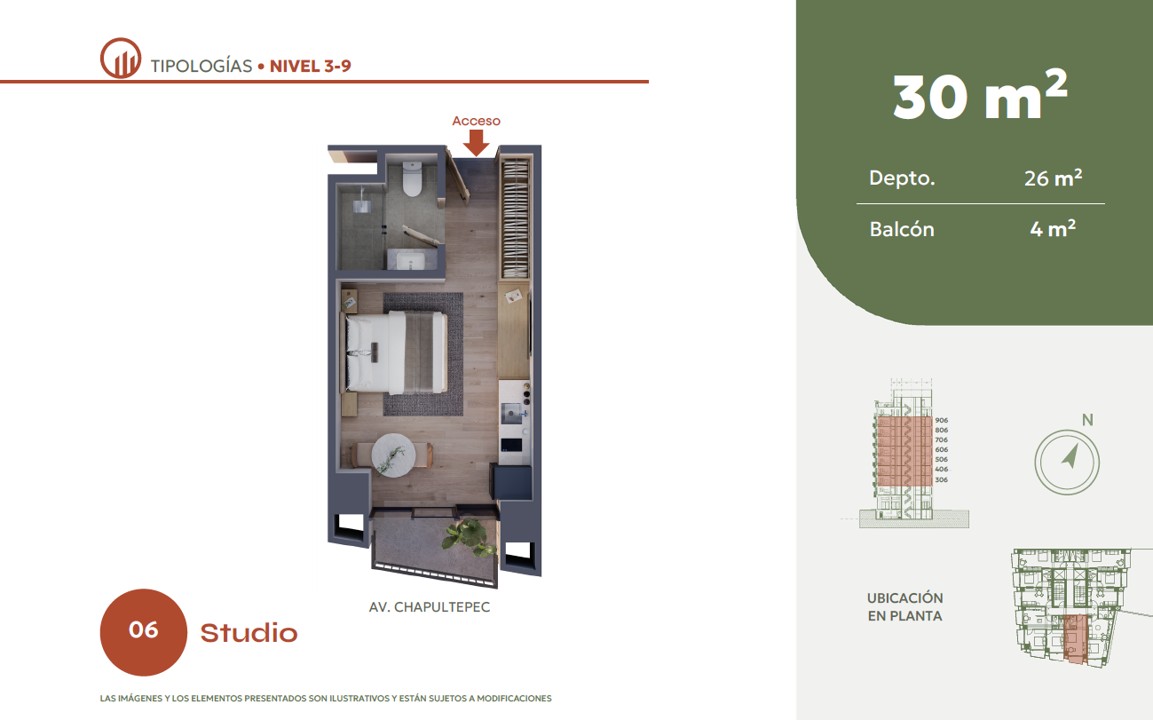 Sennse Juárez es un desarrollo de 10 niveles, con 60 departamentos desde 30 a 109 m2, de una y dos recámaras. Local comercial en planta baja. Amenidades como: