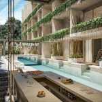 El proyecto se distingue por tener áreas exteriores con espacios verdes a través de balcones, terrazas y Roof gardens. La apertura de los espacios sociales otorga flexibilidad en cuanto a su uso y los espacios de descanso son pensados con independencia para otorgar mayor privacidad.